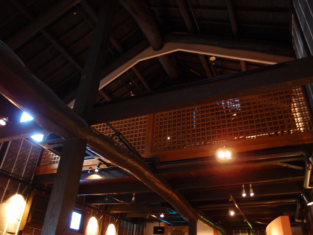 店内は間接照明が主になっているようで、昼間なのに落ち着いた良い雰囲気。米蔵を改装しただけあって高さのある造り、着席したのは1階部分ですが、ロフトのような2階席もあるようでした。