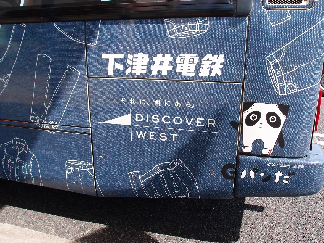 JR児島駅のバス乗り場にジーンズ柄のバスが停まっていたのでわかりやすかったです。