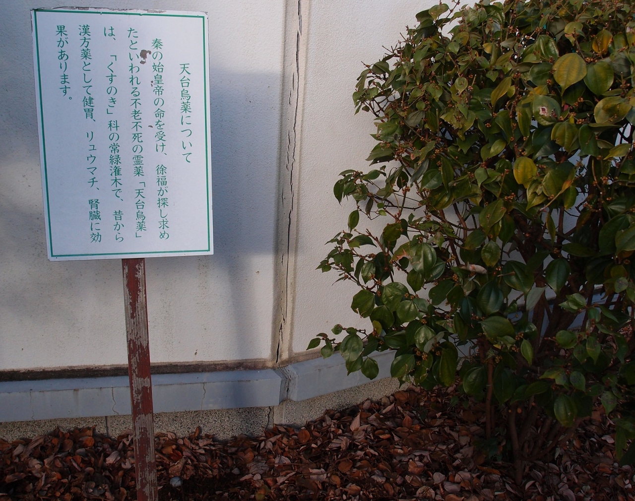 みどころとしては天台烏薬の木でしょうか、実際に植えられて説明の看板が立っていました。