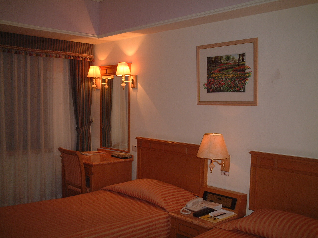 飛行場から直行してすぐのホテルでした。ツアーのためのホテルらしく、大きなバスが何台も来ていました。