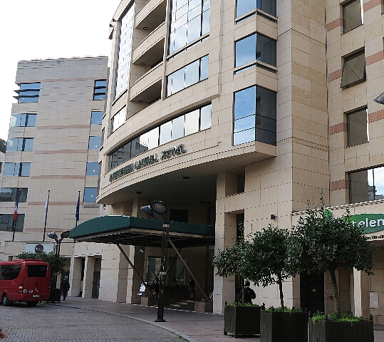 円形の公園の周囲にある、マンションの並びにあるホテルで、モノプリ(スーパーマーケット)はすぐ隣にあるし、平日なら朝7時から開いている小ぶりなカルフール(スーパーマーケット)にも、徒歩で行くことができます。
