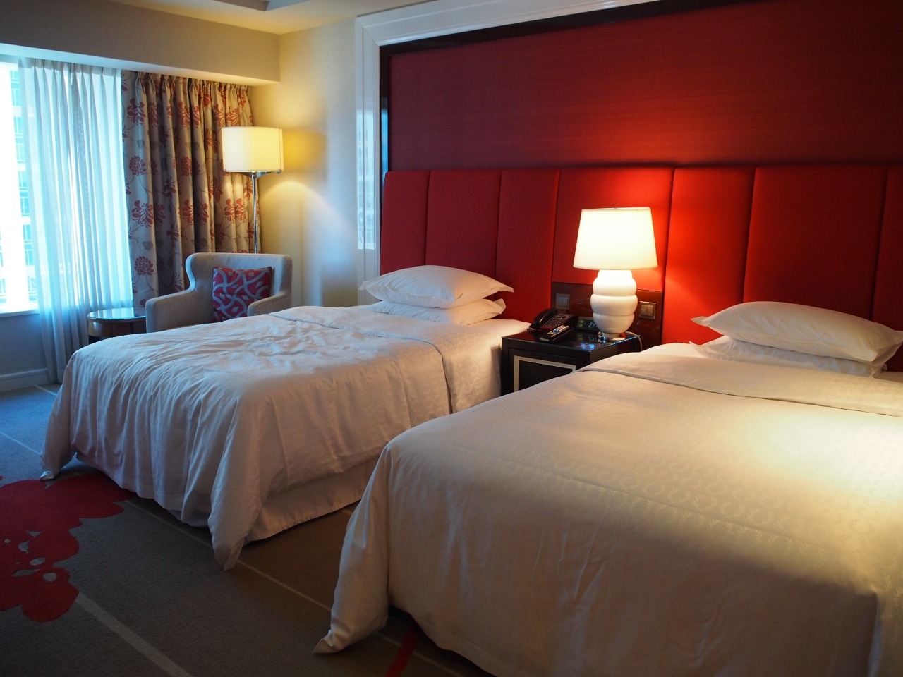 ダブルベッドはシングルが2つひっついたような、かなり広めで快適でした。