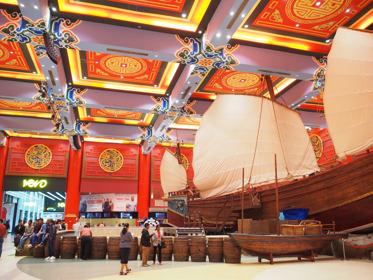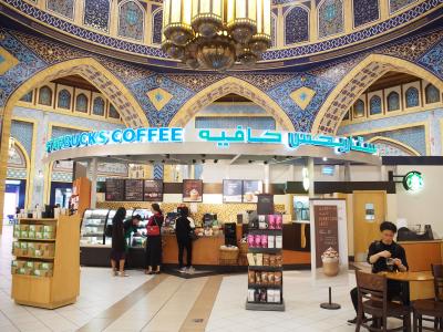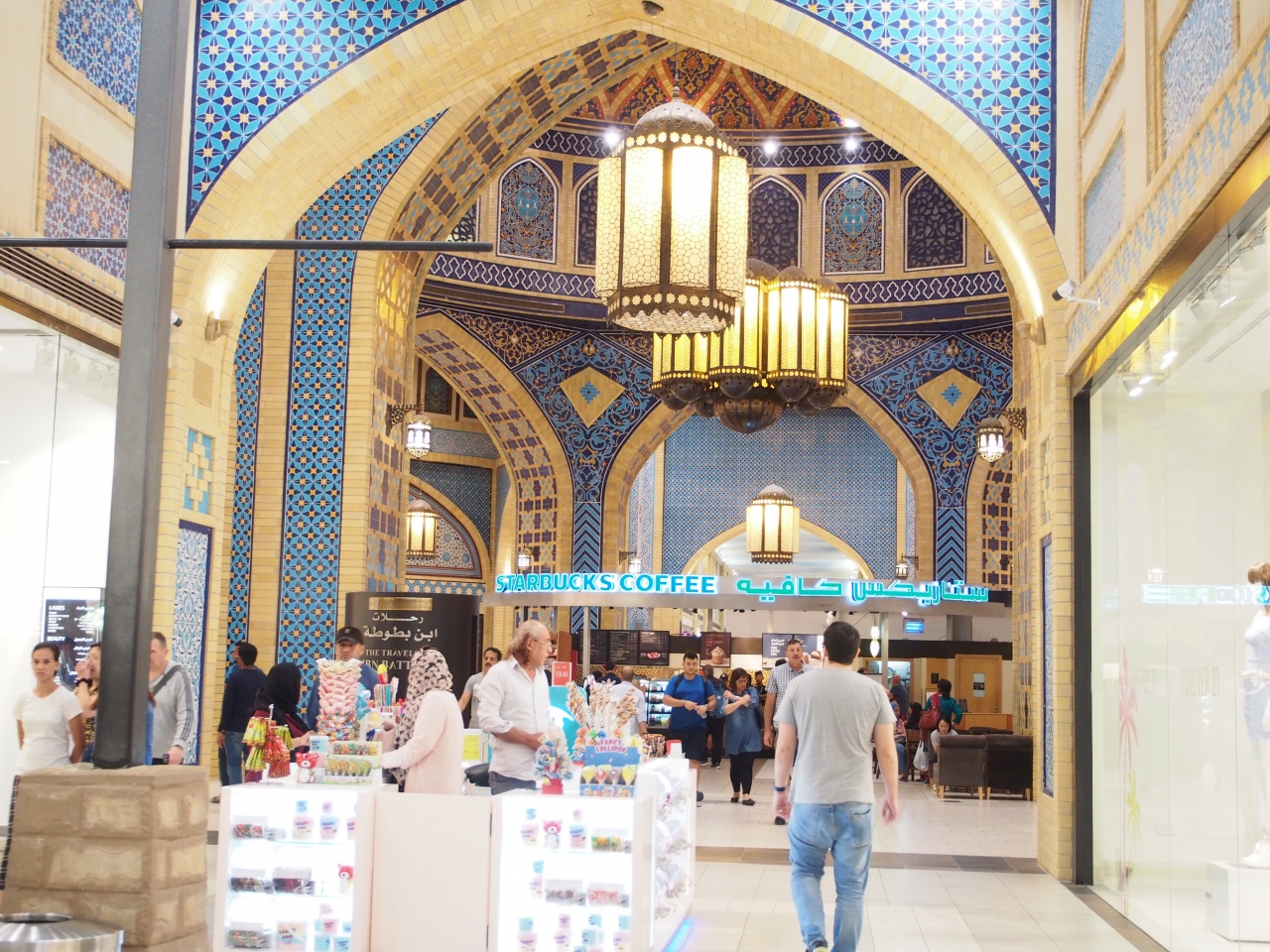 途中の Jumeirah Lakes Towers駅(駅の看板ではDMCC駅)で振替バスに乗り換えて行きました。ペルシャ、エジプト、インドなどテーマごとにゾーンが分かれていて、かわいらしくて楽しかったです。お土産を売ってるようなお店はドバイモールよりは少なめでした。奥にカルフールがあり、お菓子や雑貨などが安かったです!