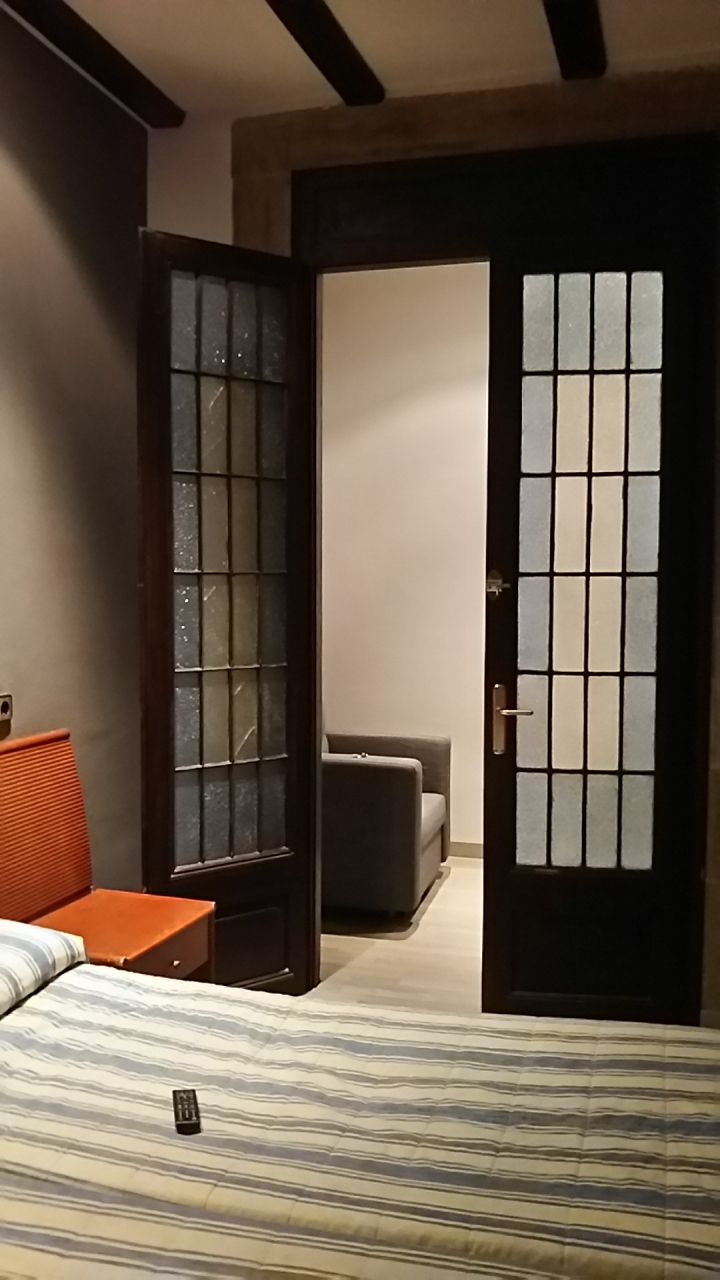ランブラス通り、フラメンコで有名なエル・コルドベスの隣にあり、リセウ駅も近く、カタルーニャ広場からも歩いて10分ちょっと。グエル邸やサン・ジュセップ市場もすぐそこ、ピカソ美術館やサンタカタリーナ市場、海の方にも歩いて行ける、とても便利な場所でした。