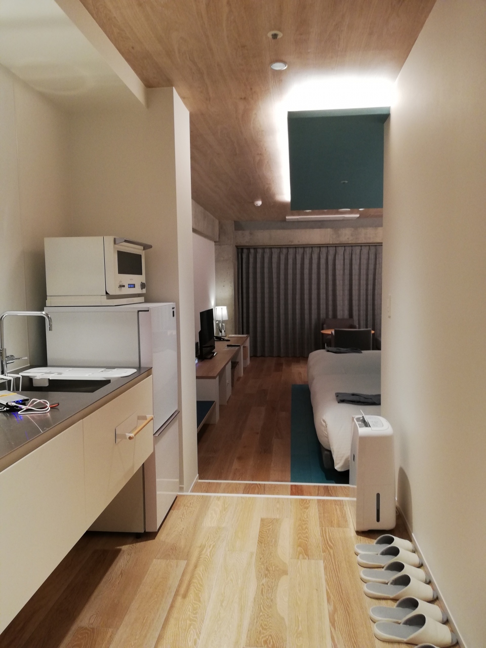 キッチンには調理器具や食器・電子レンジ・炊飯器まであり、自炊しながら長期滞在も可能です。