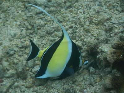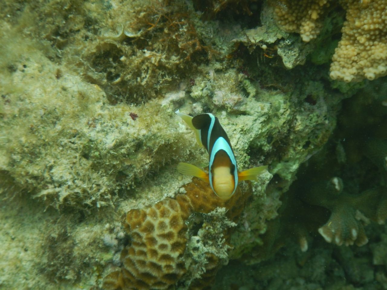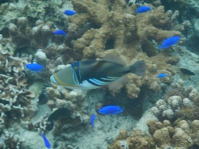 入り江になっている所は安全で、それほど深くはないのですが充分にたくさんの魚たちと出会えます。