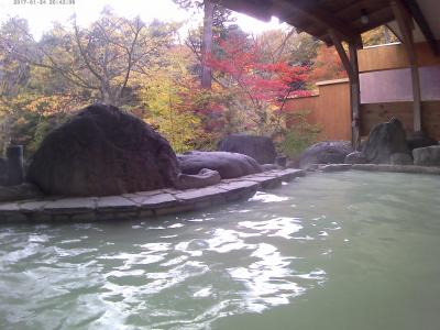 露天風呂からは渓流と紅葉を楽しむことができました。