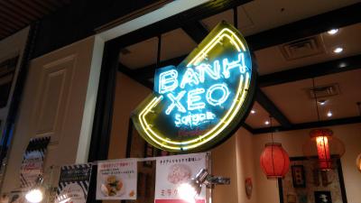 パインセオとはベトナム風お好み焼きとのことで、たっぷりのもやし、豚肉、海老がパリパリのクレープ状のものに包まれています。それを葉物野菜に包んで、ソースをつけて食べます!