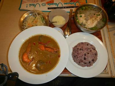 辛口海老カレーセットも同じくフォーを選べます。結構辛さがあると言っていました。