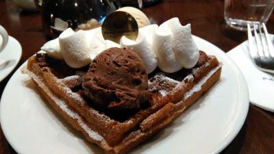 ワッフルは外がカリカリで、中はもっちり感がありました。チョコレートの美味しいこと!