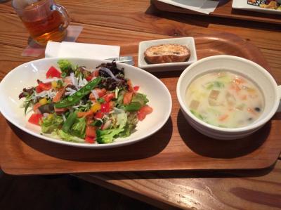 友人はタチランチ。サーモン・しらす・野菜をライスと共に。具だくさんのスープ付きでした。