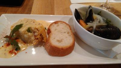 *ムール貝の白ワイン蒸し+バゲット+フリッタータ(イタリアオムレツ)