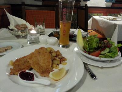 ホテルのレストランも一人で気楽に入れるし地ビールを出してくれてそれが量は多いけどおいしかった。