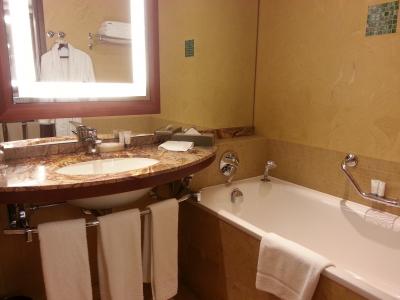 ポットが置いてあり、バスローブもありで大きなホテルです。