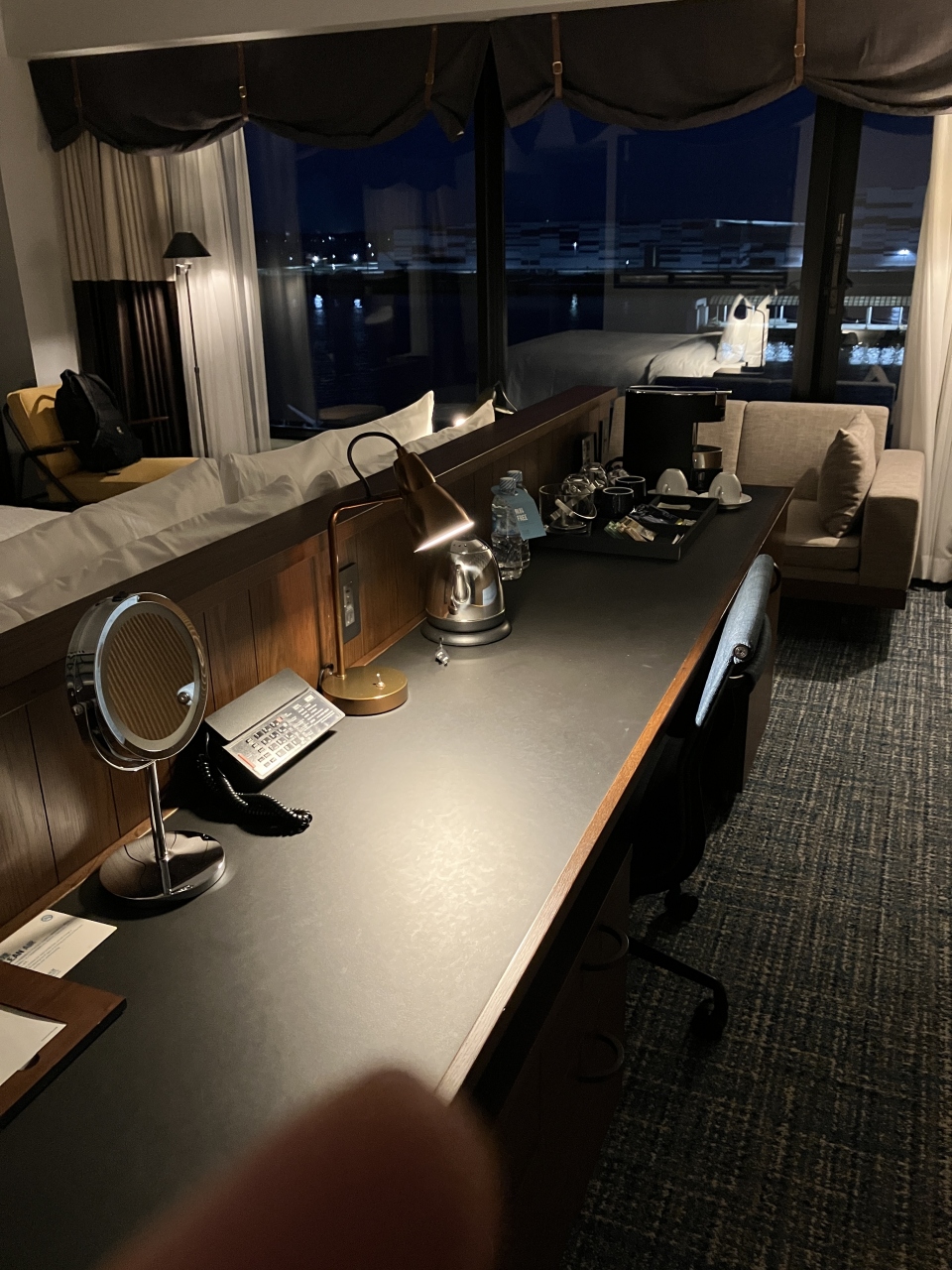 セントレア中部国際空港から徒歩圏内ですが、送迎バスもあります。セントレア港・知多半島・伊勢湾が見えてとても落ち着いた景色が、部屋からみえました。ベッドの後ろにデスク等がありこれもありかなと思いました。