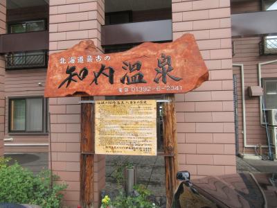 開湯800年の歴史を持つのが知内温泉、浴室は室内2か所露天1か所、源泉も2種類あるが、露天風呂以外はこの季節はとても熱くて入れない。周りには何もなく自然の中にある1件宿で風情があってよいが車で行かないと不便。