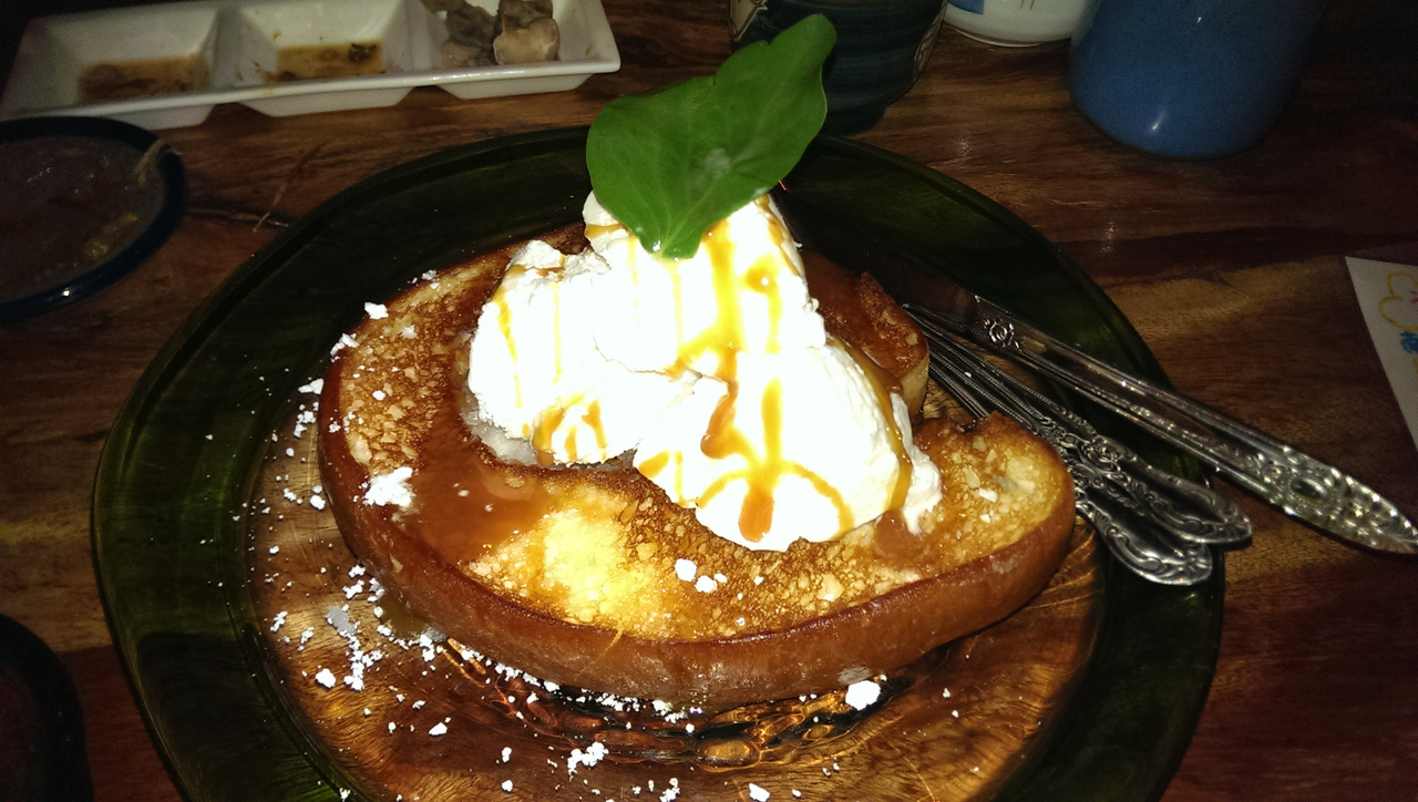 スタッフさん達皆で盛り上げて下さるので、歌って踊って楽しめます。シメに食べた 渦巻きパンのフレンチトーストがまた最高でしたよ!驚いたのは、もずくのてんこ盛り(ざるそば風)。これはヘルシーで、今年の夏はこれでダイエット決まりです!