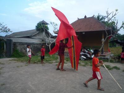 工房の後ろには田んぼがあり、地元の子供たちが凧揚げをしてました。乾季の...