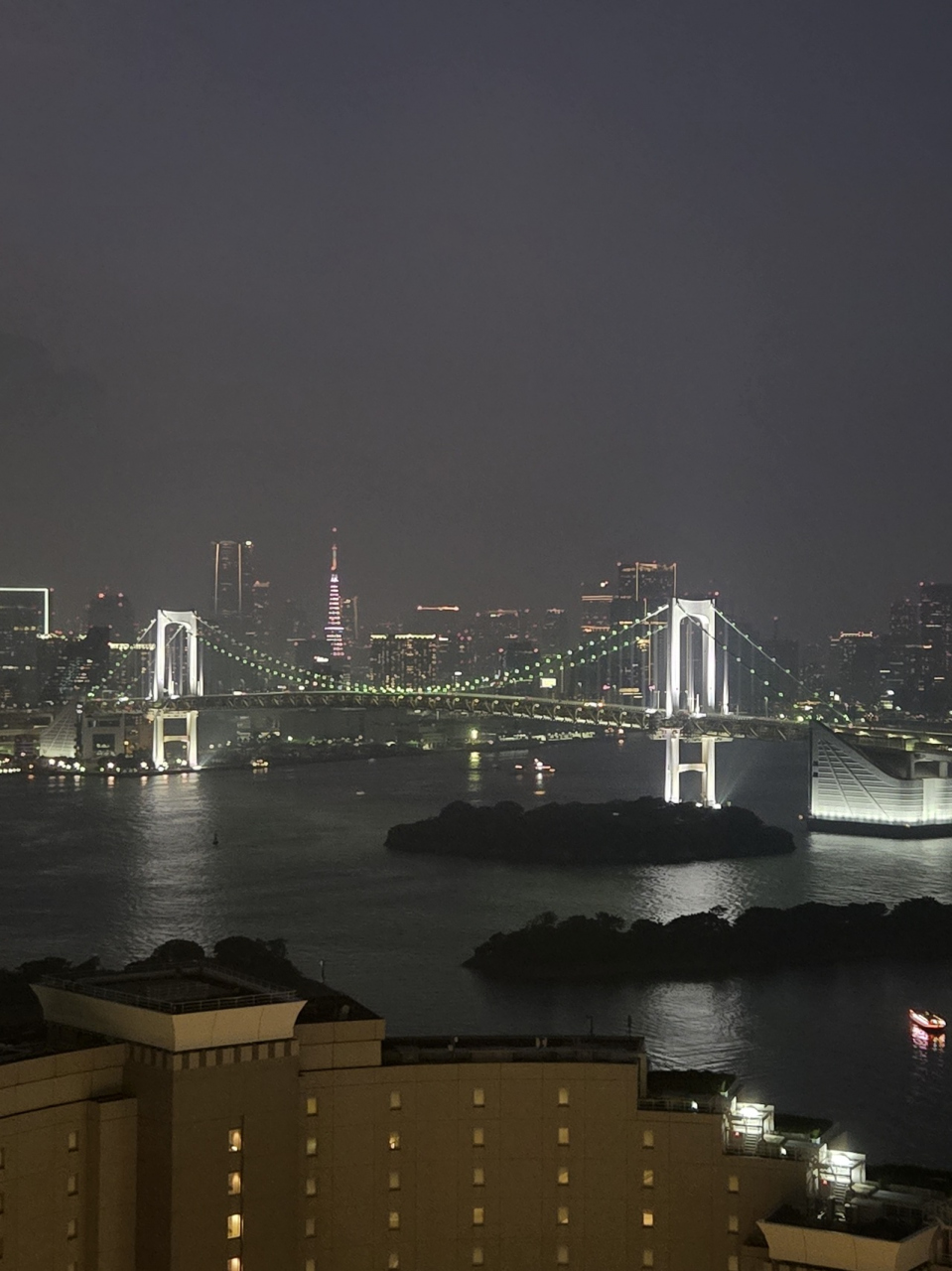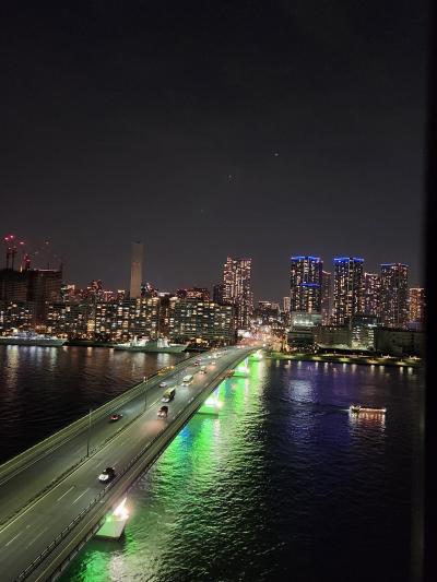 目の前が川というか、東京湾との境目なので、景色がよく、東京の夜景をお部屋から満喫できます(3枚目がお部屋からの写真)。