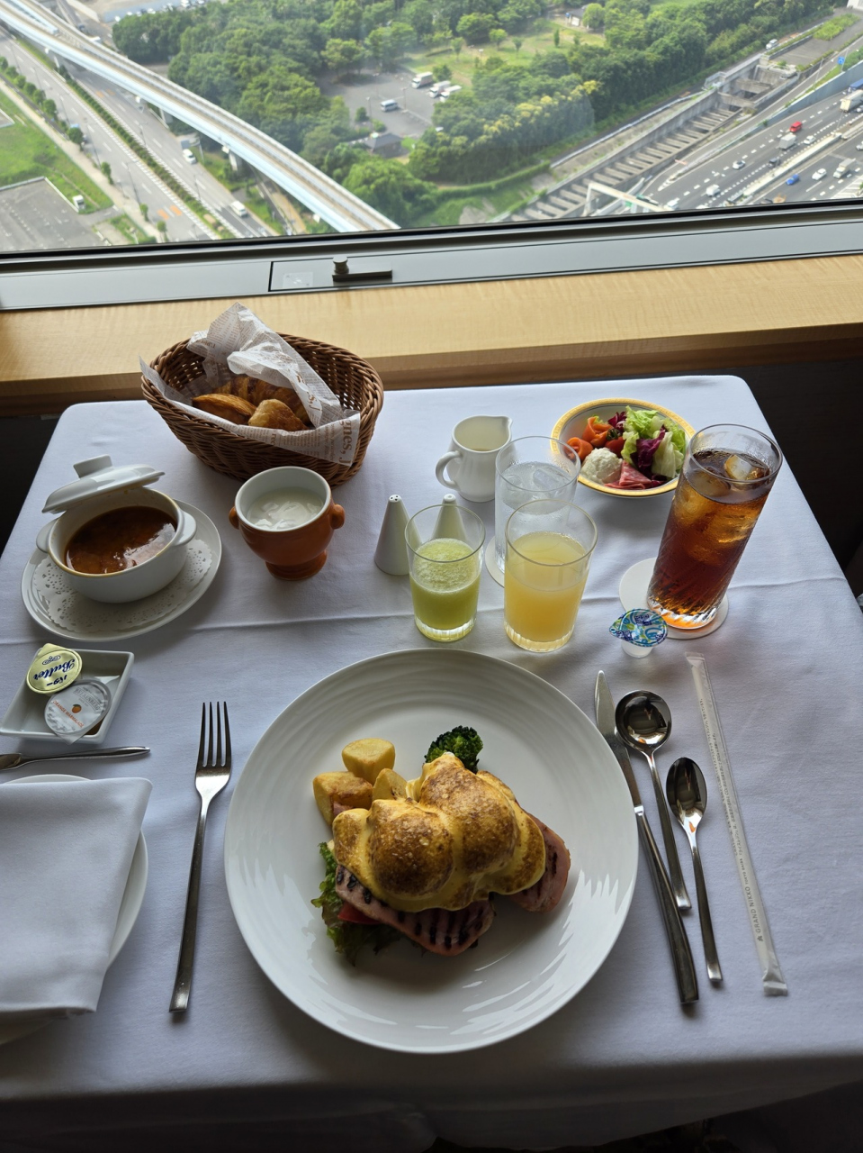 朝食はプランについていた、エッグベネディクトの朝食をルームサービスでお願いしました。