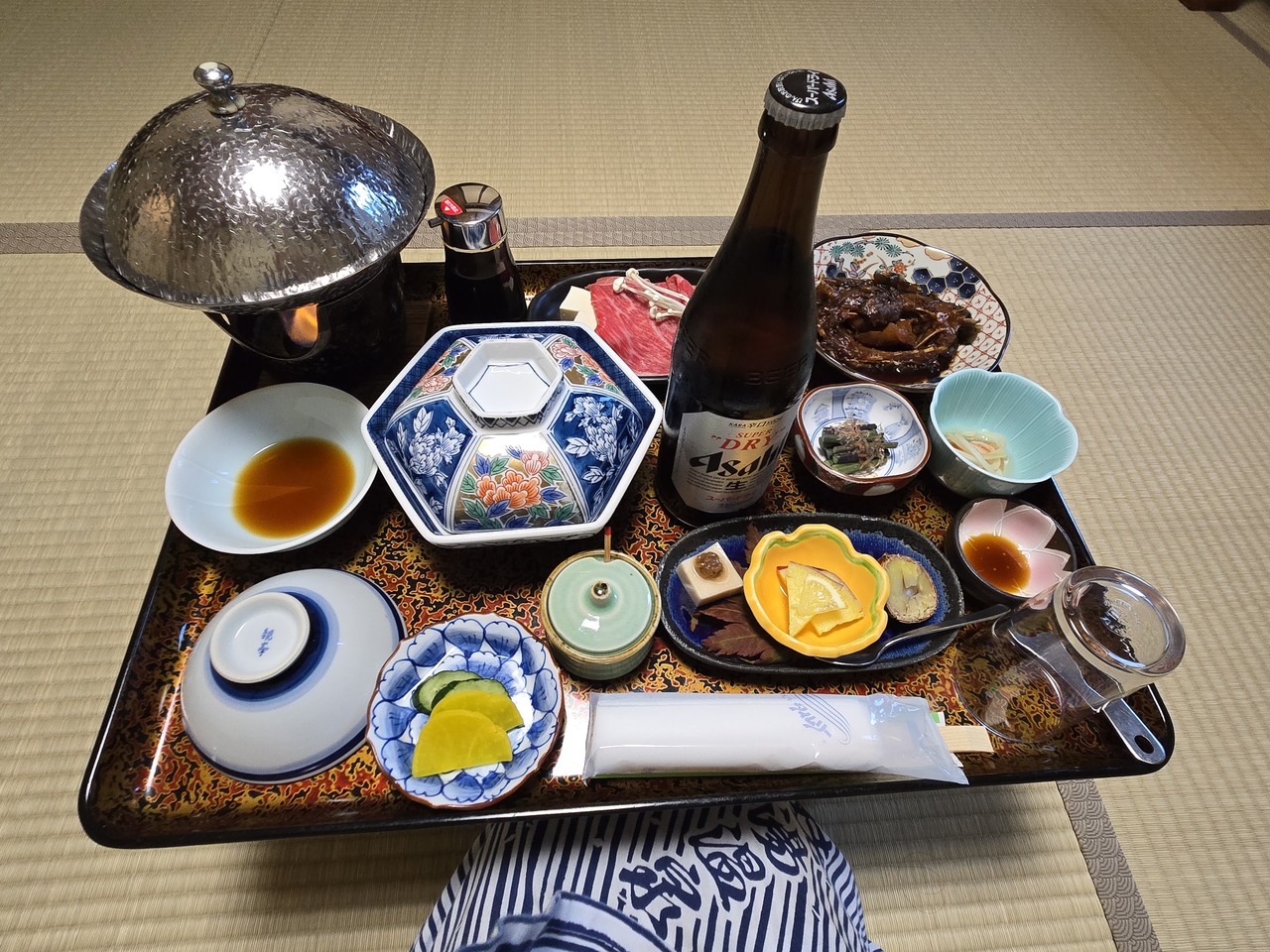 夕食は量も多く、黒毛和牛のしゃぶしゃぶがメインでいただけますが、コースの途中で唐突に洋風のものが出てきてちょっと戸惑いました。つながりが悪いのでもうちょっと全体として統一感があると良いかも。