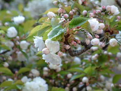 「二度桜」山桜系で一重、八重の二段咲き。(花の内側にも蕾が出来る咲き方...