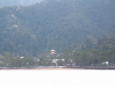 宮島へ渡るフェリーから撮りました。雪がある宮島も近年珍しく、朝から寒い...