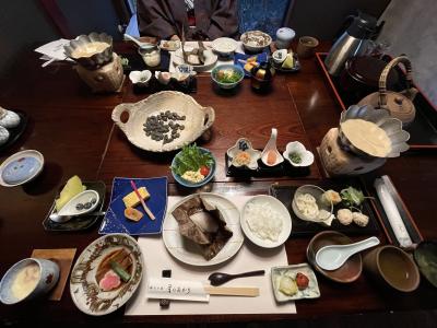 今回は両日とも天候に恵まれましたが、食事やお風呂で屋外に出るシステムのためこの宿は天気に大きく左右される気がします。