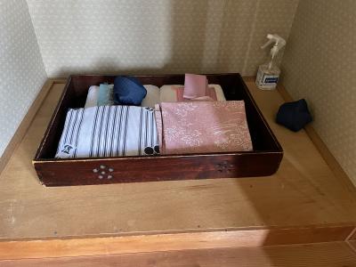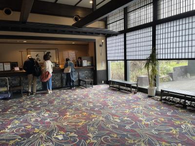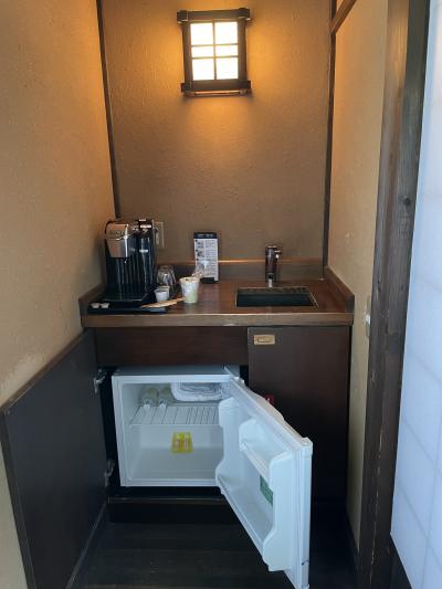 ロイヤルホテル ミヤビテイのフロントでチェックインを済ませると、専用通路を通りエレベーターで8階へ、途中の階は家族風呂・自販機がある7階のみ、8階に到着するとラウンジで抹茶と和菓子をいただき、室内で使用する好きな足袋を選んでお部屋へ、離れは静かで落ち着いた時を過ごすことができました。