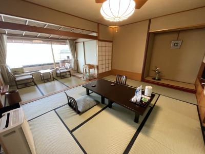HPの説明を見ても「食事についてはお客様のその日の体調や年齢になるべくあわせて頂ける様配慮しております。もちろんお料理の見せ方、出し方、食材、調理方法など毎月工夫を凝らしたものばかりです。 熱海で日常の自分を脱して非日常の特別な一日を過ごして下さい。」と案内されていますが、食事は正直イマイチでした。配慮することもなく、早く片付けをしたいらしく「ごゆっくり」と言われるのですが、早く食べ終われと言わんばかりに「ハイ次・ハイ次」とゆっくりとした食事できず。ドリンクの追加もスタッフの居る時にしか頼めず、料理の量も多くて、食べきれないほど出てきました。(まるで学生の合宿所のようです。)しかし、一見豪華には見えますが、刺身のマグロは水っぽく、作り置きの前菜も美味しくなく、焼き物は冷たく、お米はボソボソだったり、、、、残飯になってしまう。
