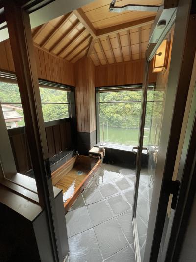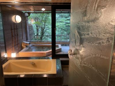 泊まった部屋は【離れ竹ぶえ】源泉掛け流し露天風呂付和室(居間+寝室)「風」の2階のお部屋で、露天風呂付なのですが浴槽からは外を望むことが出来ませんが、お風呂は大浴場や貸切風呂を楽しむことが出来るので、あまり気にはなりませんでした。