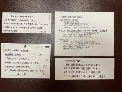 夜食のそばを22:00~23:00で提供されていましたが遅い時間の夕食だとほぼ利用しないこともあるかと思われます。