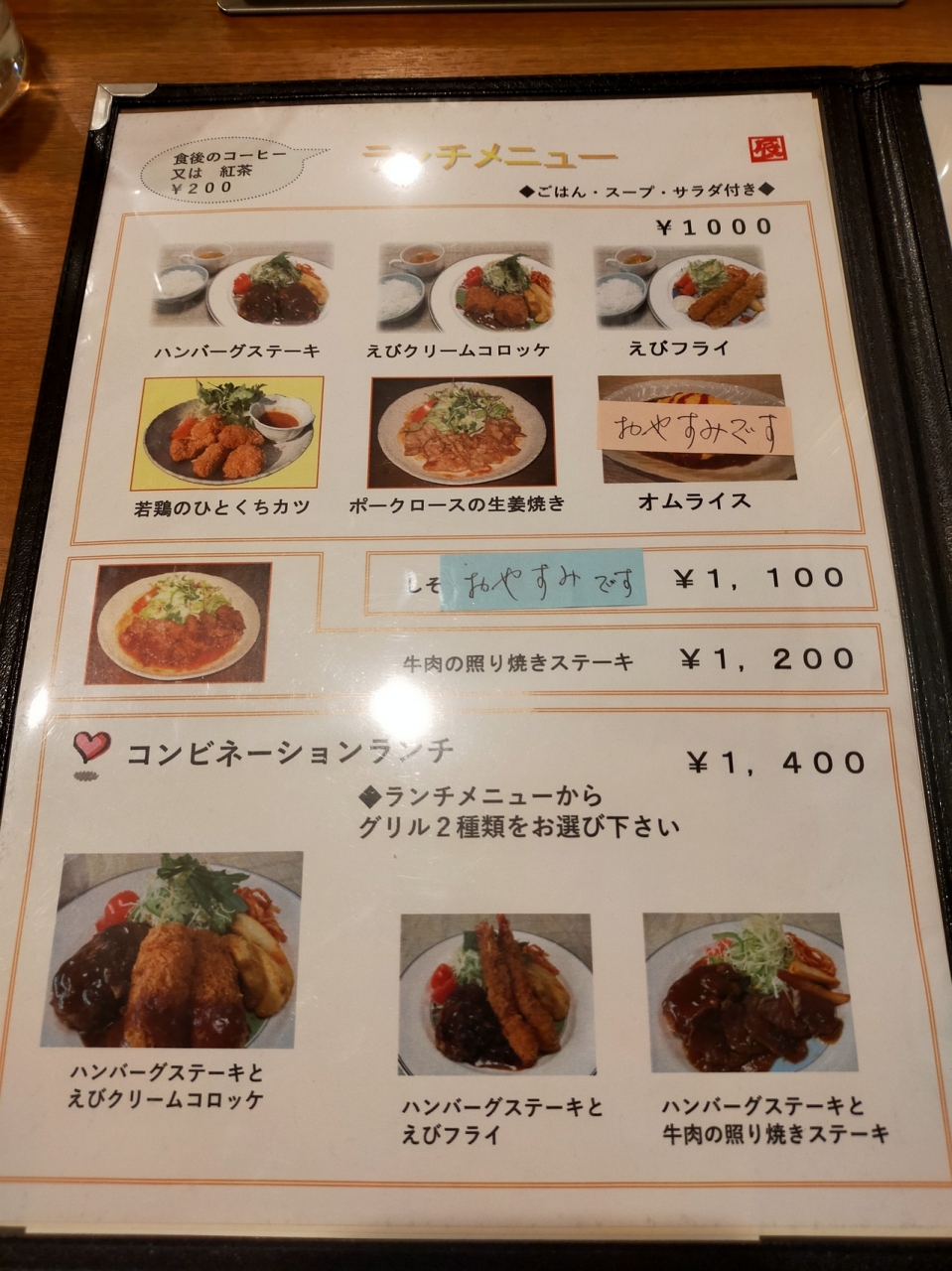 有名店『サラダのお店、サンチョ』に昔いらした方が開かれたお店のようです。エビクリームコロッケのランチをいただきました!上にかかってるトマトソースは、エビクリームコロッケの味を邪魔しない塩気が控えめでとてもまろやかな味。本格的な洋食ランチが1,000円は有り難い!と思える程美味しかったです。ライスとスープ、ごま風味のドレッシングがかかったサラダが添えてあります。