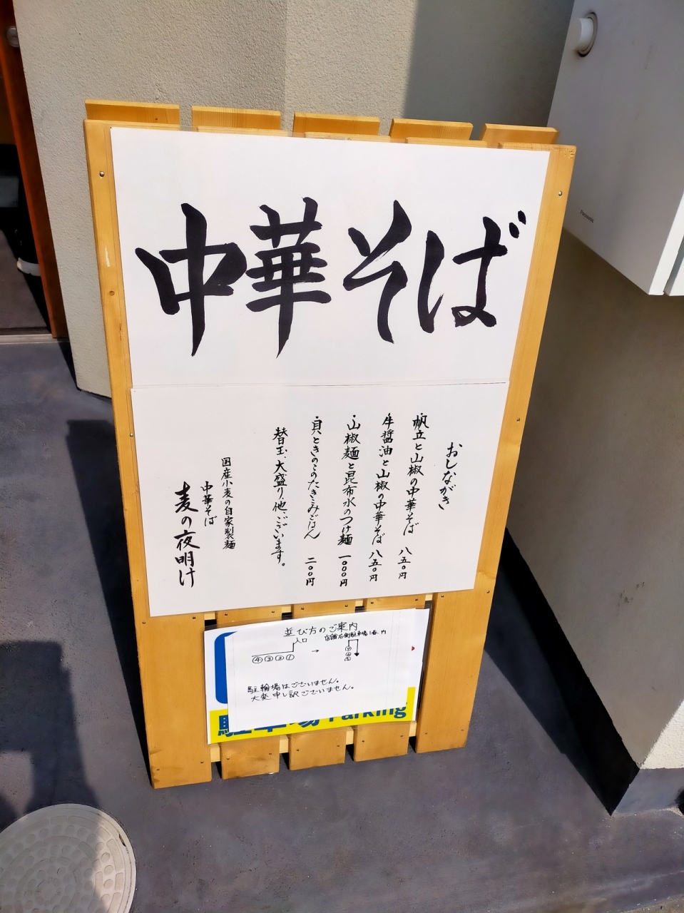 この場所の前は別の所で営業されていたようです。メニュー(そば)は至ってシンプルで3種類のみ。「帆立と山椒の中華そば」を注文!先ずはスープを一口!帆立の風味が口いっぱいに広がります。半透明の麺は喉越しが良くて美味しい。