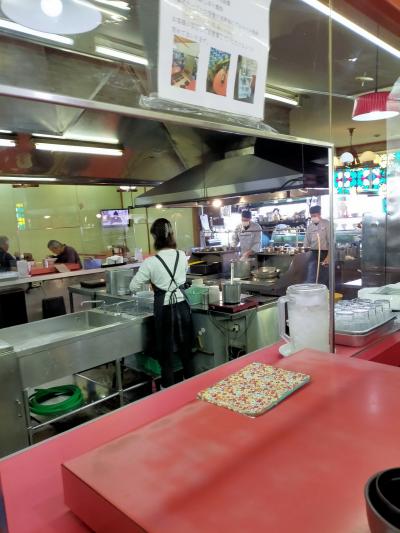 店内は面白い配置で、中央が厨房。周りを囲むようにテーブル席があります。