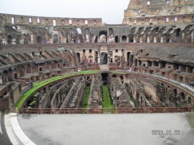 その後隣にあるフォロロマーノへ。雨の中の観光で大変でした・・。