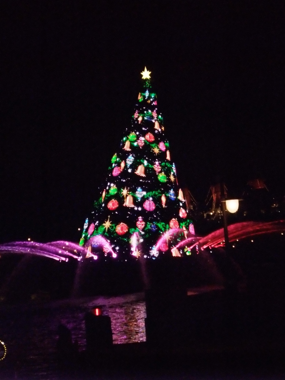 夜のショーもカラーオブクリスマスというショーがあって見ましたがキャラが船で来てクリスマスの音楽と一緒に踊るショーでしたが10分と短く見ごたえがありませんでした。