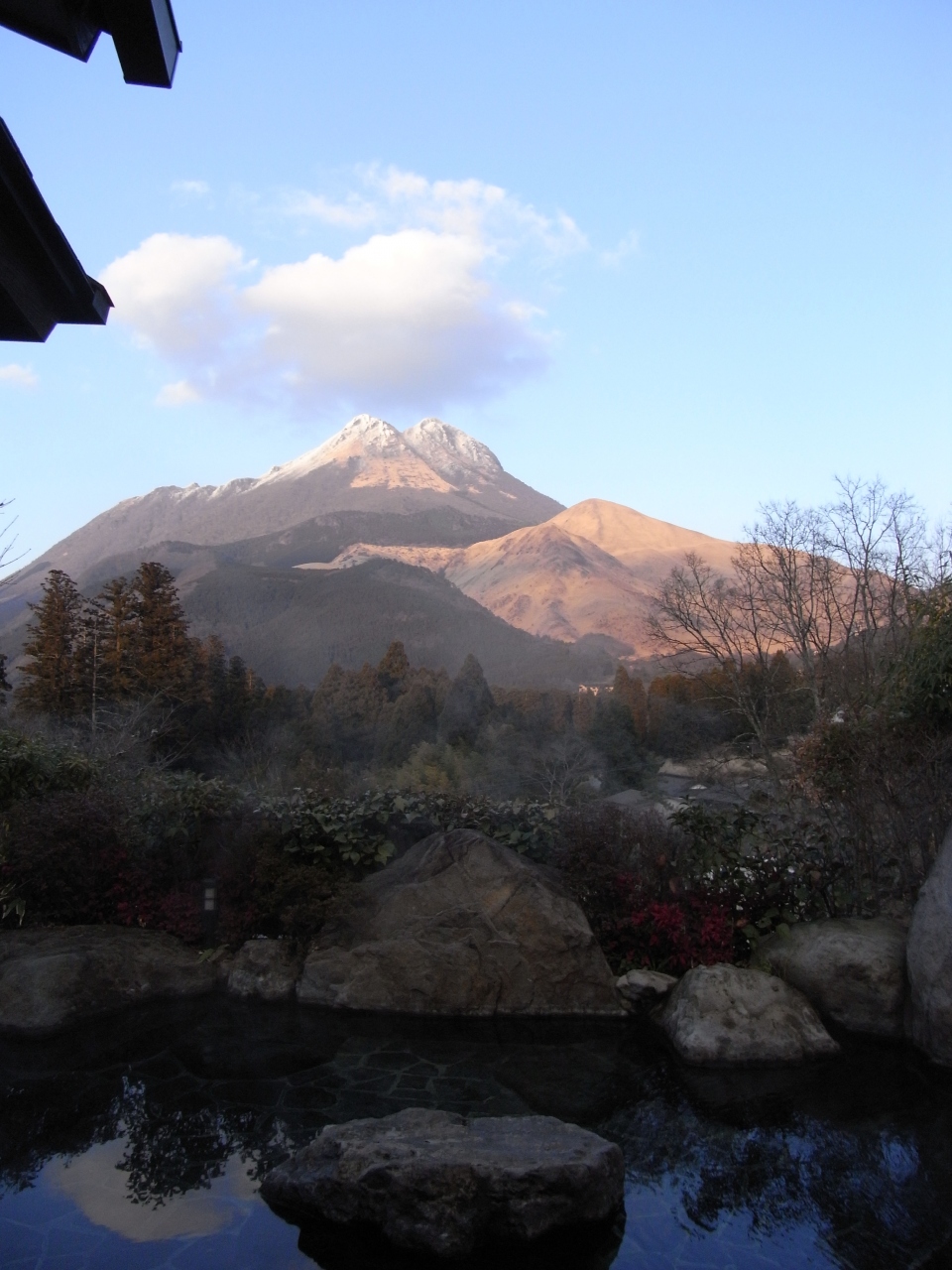 女性の露天風呂は囲いがあり、眺めが良くない旅館が多い中、高台にあるこちらは雄大な由布岳が目の前に広がり、ついつい長湯してしまいました。