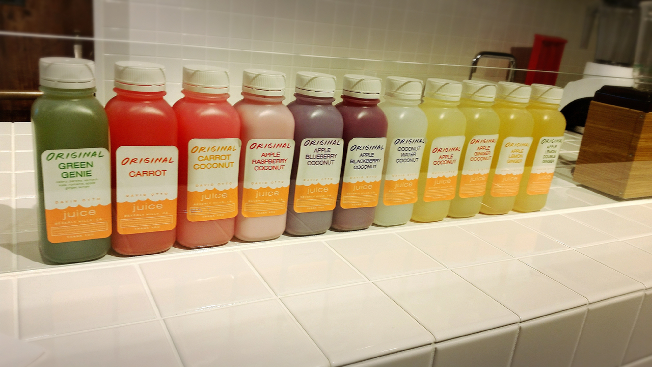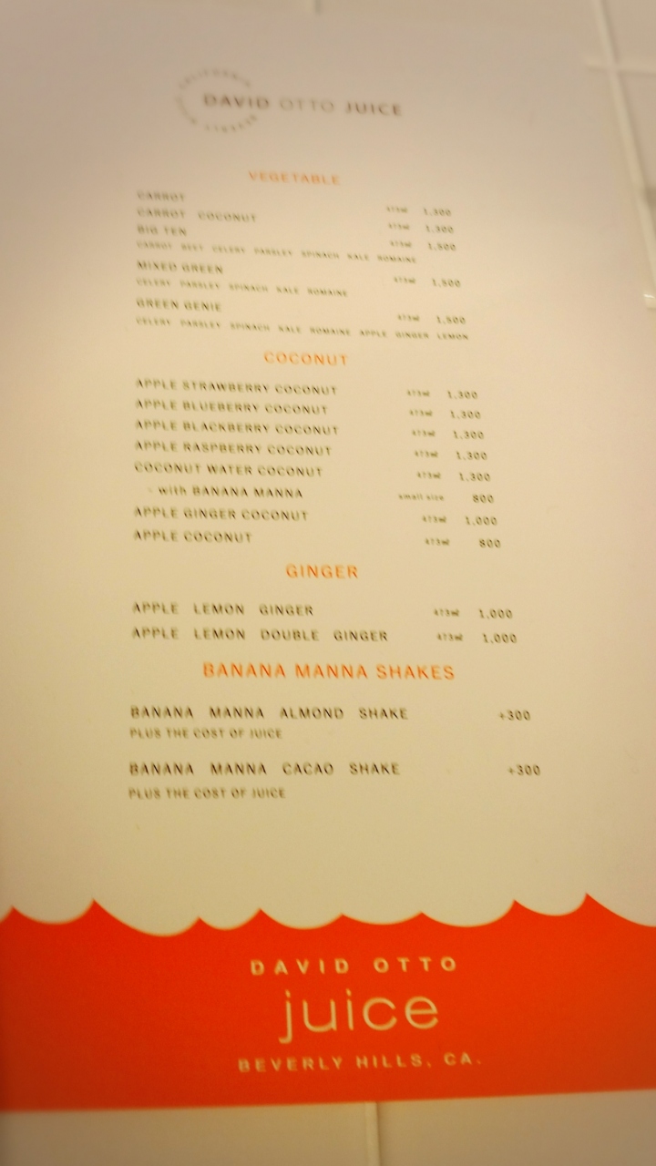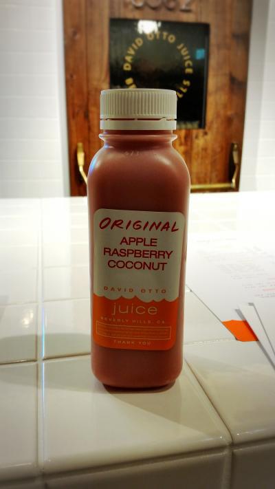 今話題のコールドプレスジュースのお店に行って来ました♪(^_^)/このお店は店名にもあるデービッド・オットーさんが始めた、本格的なビーガン(厳格な菜食主義者)の方が主食としても飲めるジュースです♪元々サンタモニカにオープンし、現在はハリウッドにあるそうです♪(^_^)/そこで今回はアップルラズベリーココナッツというジュースを頂きました♪(^_^)/ここのココナッツはこだわりがあるらしく、通常のココナッツとは違い、入手出来るまで2年掛かるメキシコ産のオーガニックオールドココナッツを使用しています♪(^_^)/味は普通のフレッシュジュースよりも味が濃くラズベリーの酸味がありゴクゴク飲めるジュースでした♪(*^^*)値段がもっとお手頃ならばチョクチョク飲みたいです♪お値段は写真のボトルで1300円しましたf(^_^;お値段は張りますが味は間違いないのでオススメですよ♪(^-^ゞ