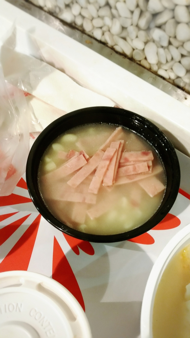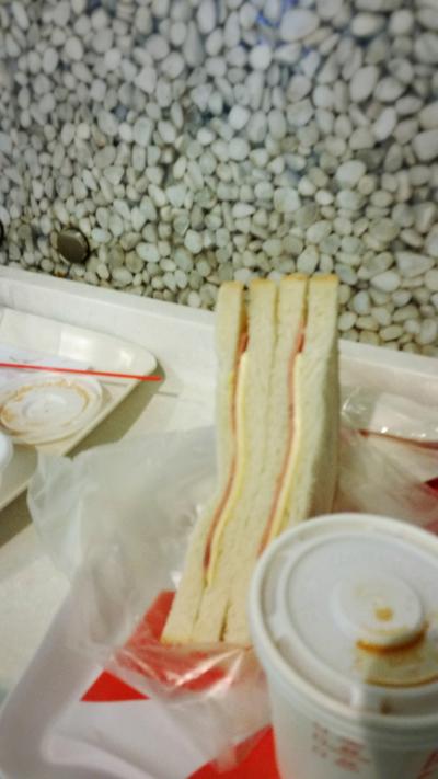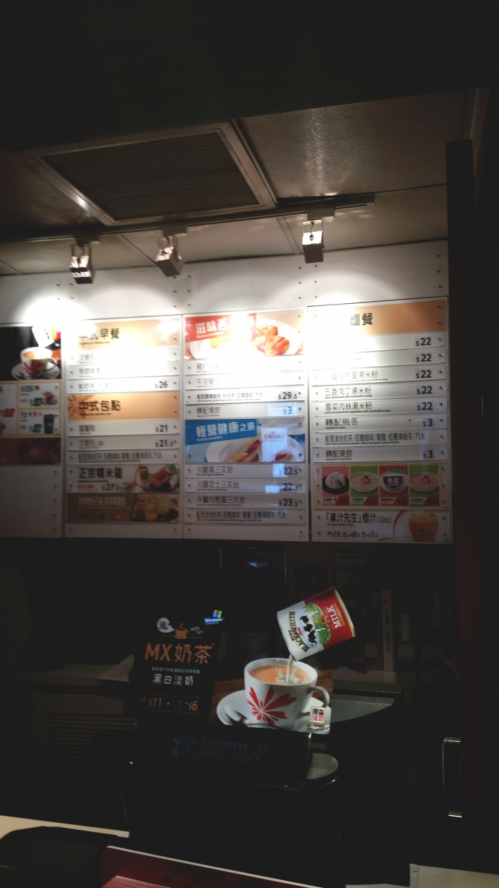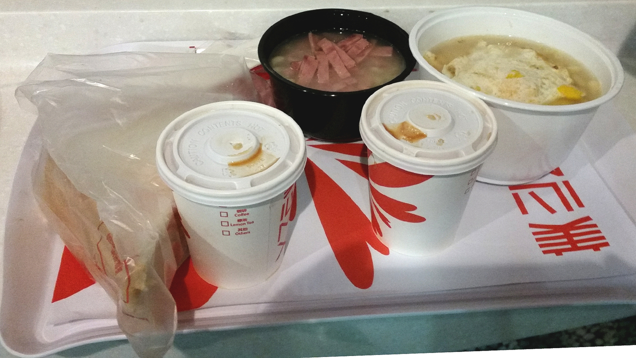 ここはMTRに乗って移動中に見付けた、何となく美味しそうで、しかも、香港のど定番の朝御飯を食べられそうだったので寄ってみました♪(^_^)/メニューには小さいけど英語表記がされていて、どうにか注文も出来ました♪(^-^ゞ注文したのはハムチーズサンドとマカロニスープです♪(^_^)/マカロニスープは単品で頼んだのより、ハムチーズサンドに付いてたマカロニスープの方が滅茶苦茶美味しかったです♪(*^^*)あとコーヒーと紅茶が混ざってるのを飲んでみたら、コーヒーの味は微かにだけで、ほぼミルクティでした~(^^;)(;^^)けど自分は好きな味でしたね♪o(^o^)o
