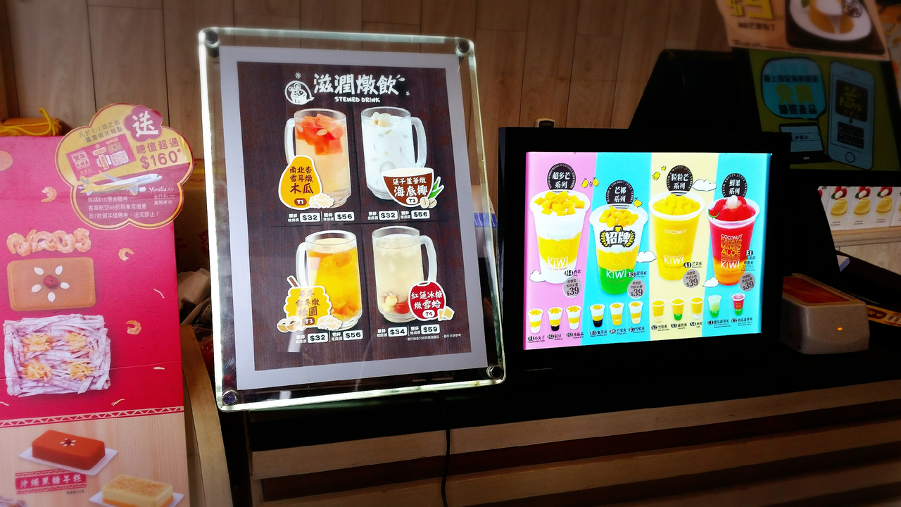 ここは雑誌やネットに沢山載っていて、香港でデザートと言えば、ココ!!ってお店みたいで、行く前からずっと気になっていて、帰国日に利用しました♪(^_^)/ただ、帰国日だったのに朝10時にオープンしてなくて11時からオープンって貼り紙されてて、焦りましたが何とか立ち寄る事が出来ました♪(^_^)/お店は彌敦道をビクトリアハーバーと反対方面に進んで、右側のエリアにあります♪(^-^ゞ店内もテーブル席がいくつもあってゆっくり出来そうでした♪(^_^)/頼んだのは、マンゴージュースとスイカジュース♪(^_^)/どちらも味が濃くて甘くて美味しかったです♪特にスイカジュースは病み付きになりましたよ♪(^_^)/あと、ジュース自体にゼリーが沢山入ってて、これだけでお腹がイッパイになりそうなので、単品のジュースだけのメニューがあったのかな?なかったのかな?(・_・?)分からないけど、無ければ作ってほしいな〜と思いました〜(^^;)(;^^)それ以外は店内綺麗だし、店員さん親切だし言うことなしでしたよ♪(^-^ゞ