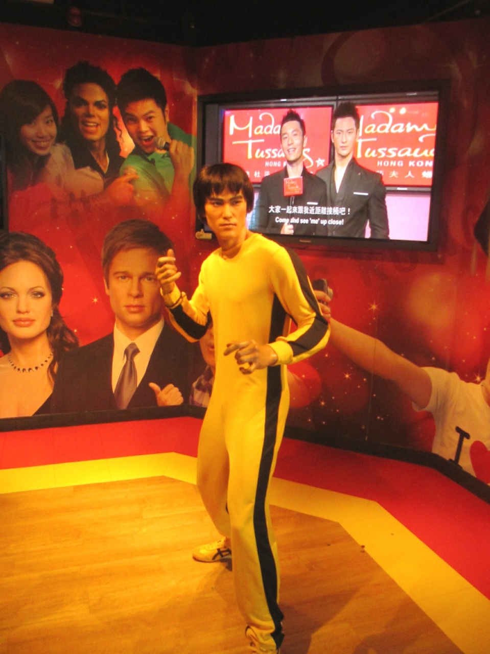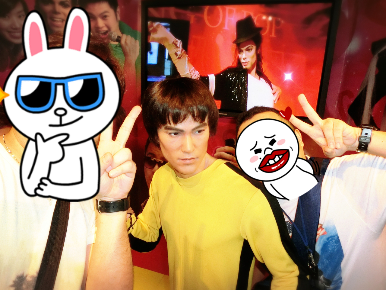 ここは有名人の蝋人形が沢山いる場所です♪(^_^)/自分達は行った時間にはまだ開いていなくて、入り口の向かい側にある、ブルース・リー先生のところだけ無料で開放されていました♪(^_^)/時間に余裕があれば待って中も見たかったんですが、時間がなかったので、今回は入口で我慢しました~(^^;)(;^^)けど、無料でブルース・リー先生と記念写真が撮れるのはオススメですよ♪o(^o^)o