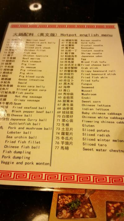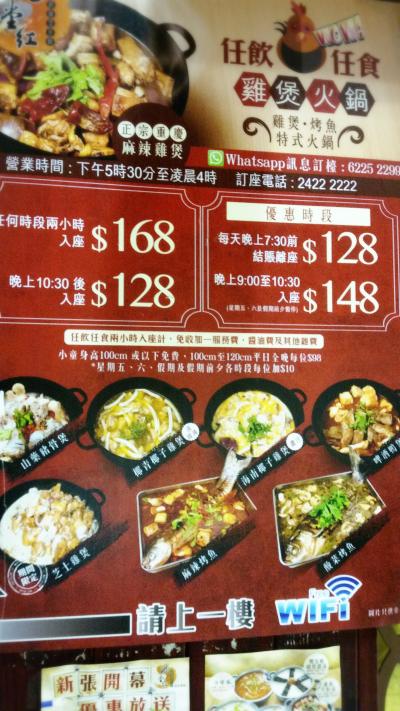 ここは油麻地駅のA1出口から出て真っ直ぐ来て、信号がある左斜め前の建物です♪(^-^ゞ初めは場所が分からずに結構歩き回って探して見付かりませんでした(ToT)これでダメなら違う所にしようとしていたら、直ぐに見付かって、しかも駅から近いしf(^_^;お店は日本語メニューはなく日本語はおろか英語も通じません。ここは初めのオーダーがまず難しい。因みにここは火鍋の食べ放題飲み放題のお店です♪(^_^)/最初にベースを選ぶんだけど、紙のランチョンマットに写真があるから、それを指差して頼みます。次に辛さを選びます♪何か友達が適当に頼んだf(^_^;次にその来た鍋には汁はなく、まずは具材をある程度タベマス♪それから中に出汁を入れてもらって、しゃぶしゃぶする具材を注文します♪タレやおつまみはセルフで取ってきます♪ドリンクも全て自分で取ってきます♪アイスも食べ放題に含まれます♪(^_^)/しゃぶしゃぶの具材のメニューも日本語のはなく、英語表記の物はあるので、何とかして英語表記の物はもらえました~(^^;)(;^^)何となくですがね~(^^;)(;^^)でも店員さんも言葉は通じなくても何とかしてあげなきゃみたいに構ってくれたので、凄く助かりました♪( T∀T)他にも色々な方に助けてもらったので、それは旅行記に書きますね~♪(^_^)/とにかく場所は分かり易いし、味も良かったし、お店綺麗だし(勿論トイレも綺麗)、店員さんも感じが良かったし、あととにかく今回の旅で一番安かったかも~(^^;)(;^^)あっ!そうそう、みんな知ってるとは思うけど、『任飲任食』って飲み放題食べ放題って意味だってさ~♪(^_^)/もう覚えたから、また今度はここで自分達だけで注文出来る様に頑張ろうっと♪o(^o^)o