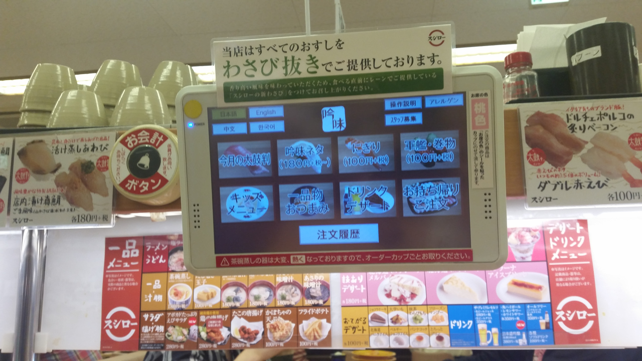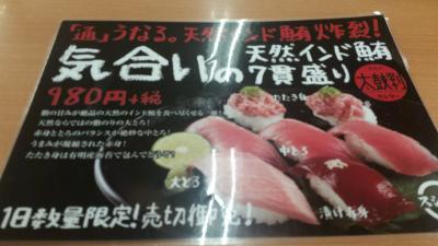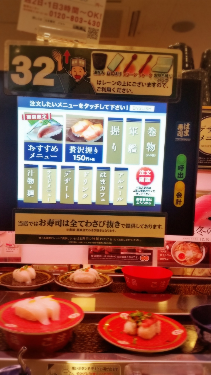 ここはテレビのCMで最近流れてたお店で、気になって行ってみたいなお♪と思い行ってみました♪(^_^)/お店は広く綺麗で、店員さんも感じが良く、ネタも値段の割りには美味しかったです♪(*^^*)ただ、注文する際にタッチパネルを使うんですが、それで6件注文が入ると、オーダーがストップしてしまって、頼んだものが来るまで注文が出来なくなるのが難点でした(ToT)あと、お昼時だったからか、他の回転寿司チェーンよりも注文した物が出るのが時間がかなり掛かったのが残念でした(ToT)味は良いだけなのに勿体ないな~(^^;)(;^^)
