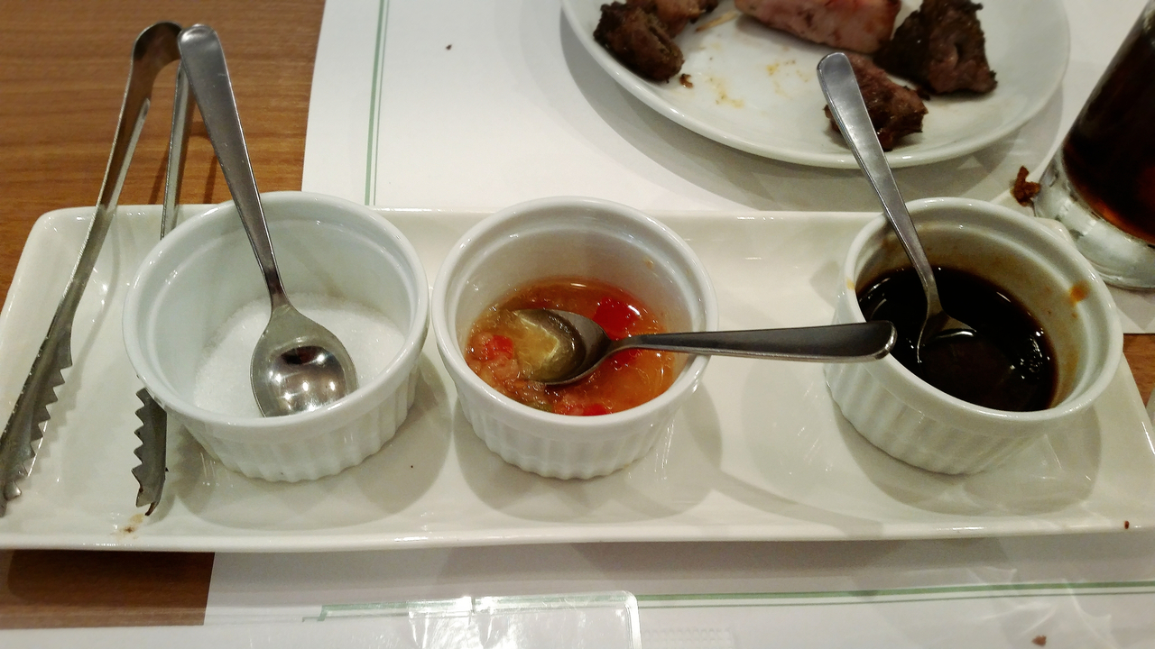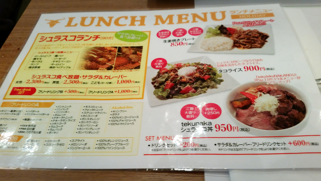 ここは中野駅北口にあるサンモールとブロードウェイの入口の間を右折して30秒位歩いた右手にある、シュラスコの食べ放題のお店です♪(^-^ゞお店は出来てからそんなに経っていないので、店内は凄く綺麗です♪(^_^)/休日のお昼時でも比較的すんなり入れます♪(^_^)/シュラスコはそれなりの種類があり、サラダバーなる物がありますが、大した物は残念ながらありませんf(^_^;あとカレーライスがあるんですが、学校給食のカレーライスみたいで懐かしいですよ♪o(^o^)o注文の仕方ですが、まずは一通りの物が提供されて、食べ終わってから好きな物を数を言って注文します♪(^_^)/ただ、ここは注文してから提供されるまでかなり時間が掛かるので、なるべく早め早めに注文される事をオススメしますf(^_^;