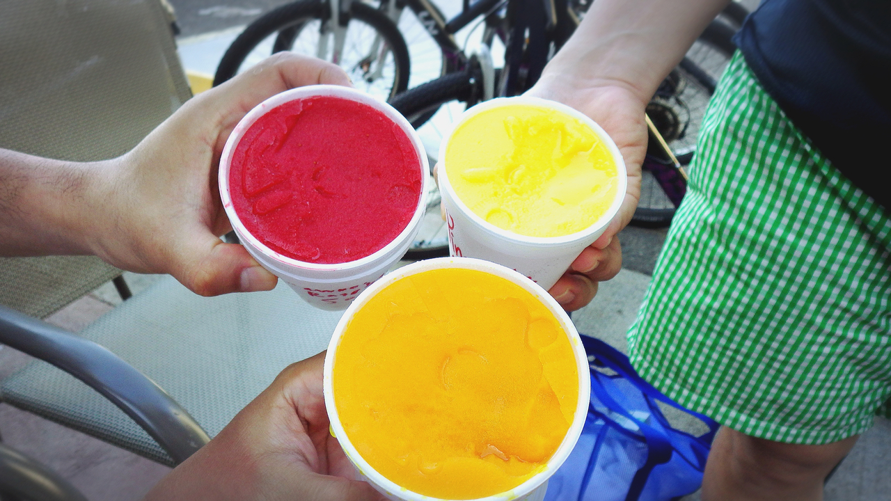 ワイキキのクヒオ通りにあったお店が潰れてしまったので、一番近場で行ける所がここです♪(^-^ゞ今回は軽く休憩する為の利用だったのですが、普段であればプレートランチや、サイミン、バーガー等を注文しますが、今日はドリンクとスパムむすび♪(^_^)/ここのかなり大きいし、注文入ってから作ってくれるから、熱々で美味しいんだよ♪(^_^)/店舗はパラソルや屋根がある席で食べれるので、ちょっとした休憩にも良いですよ♪(^_^)/