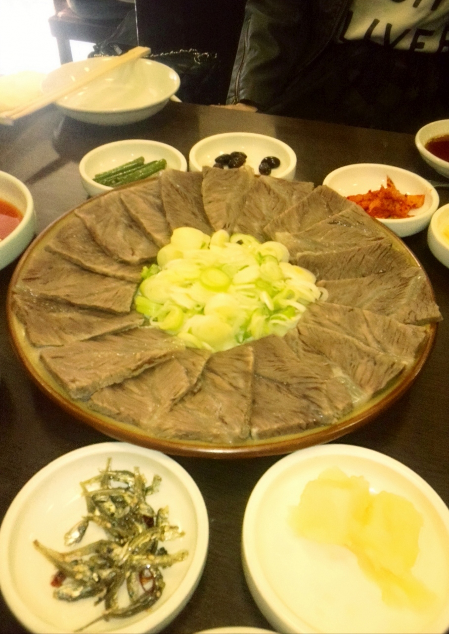 ここは20年近く前から通っている赤坂の隠れた名店♪元々テレビや雑誌にも載らず出ずだったのに、最近になってチョクチョク紹介されてるのが嫌な感じ!!<(`^´)>元々はソルロンタンとスユックのみしかメニューにありませんでしたが、数年前からチヂミとチャプチェがメニューに加わりました~(^^;)(;^^)この二つは大してって感じです~(^^;)(;^^)しかしながら、ソルロンタンは春雨入りで、飲んだあとや疲れてる時等にはもってこいの優しいお味で、色々なところで食べたけど、ここのが一番美味しいよ♪(^q^)ソルロンタン頼むとパンチャン10皿位出てきて、全てお代わり出来るし、あとライスも出てきて、これも1杯は無料でお代わり出来る♪(^_^)/昔は何杯でも無料だったんだけどな~(^^;)(;^^)それと、スユック♪これが本当に美味しくて、牛のホホの蒸し肉なんだけど、プルンプルンで、ネギを巻いてポン酢に浸けて食べるんだけど、歯が要らない位柔らかくて、口の中で溶けるんだ~♪(^q^)これはライスが進む進む~♪(^w^)ソルロンタンとスユックお勧め!!値段はソルロンタンが税抜き1500円で、スユックが1人前税抜き2000円だよ♪(写真は二人前)是非とも味わってみてね~♪(^_^)/