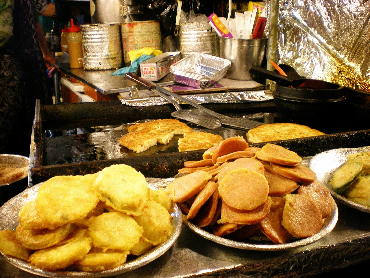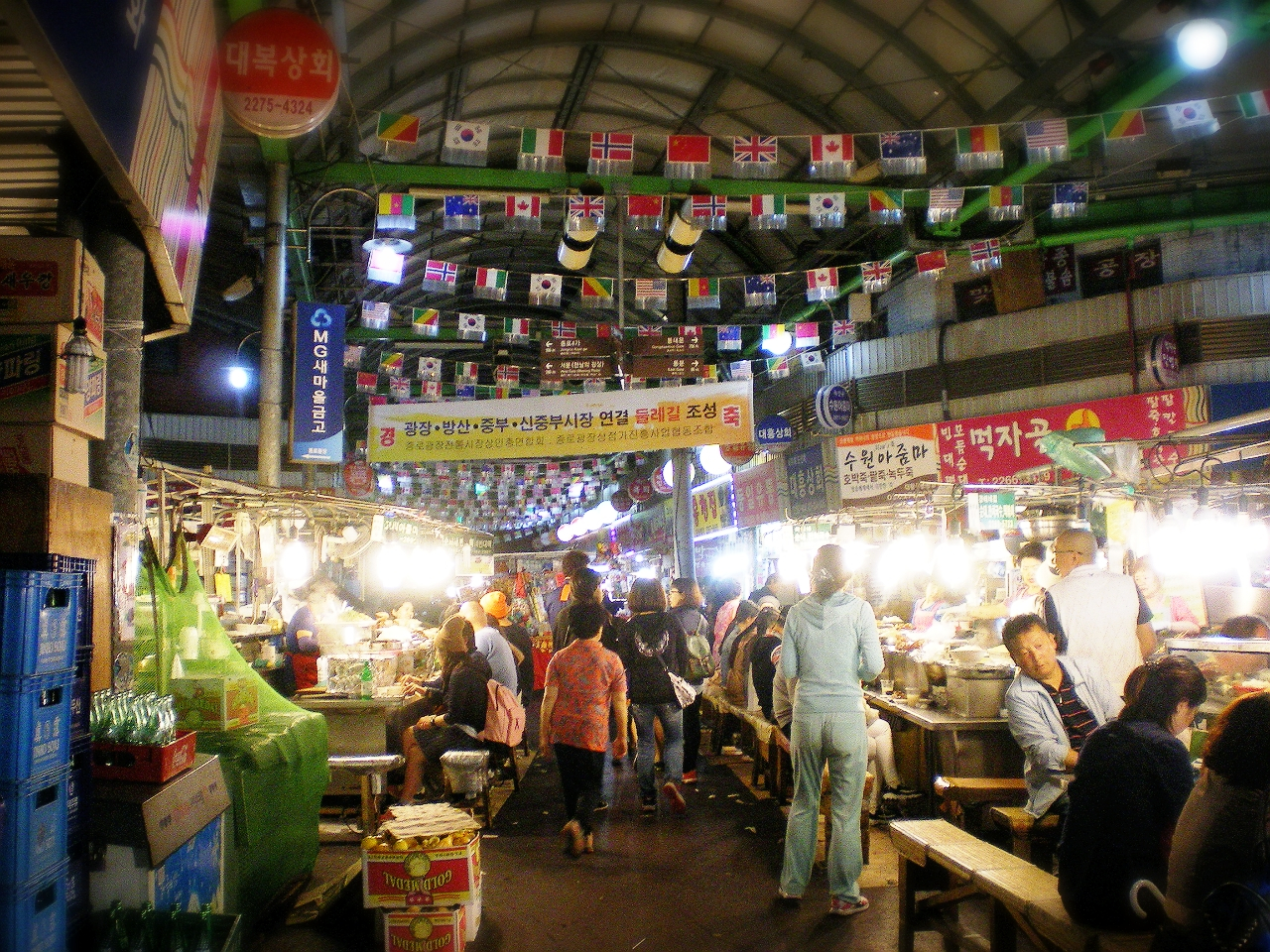 今回初めて行けたんだけど、たまたま東大門に向かう途中で見付けて行きました♪(^_^)/夜10時を回っていたので、常設のお店は基本閉まってしまっていました~(^^;)(;^^)しかしながら、屋台のお店はいくつも開いていて、色々な屋台料理を味わう事が出来ます♪(^q^)自分達か行った時はラジオかラジカセみたいなので、民族音楽を大きな音で掛けて、歌いながら宴会をしている方達がいましたね♪(*^^*)凄く楽しそうでした♪(^_^)/今度はお店の開いている時間帯も見てみたいな♪と思いました♪(^-^ゞ