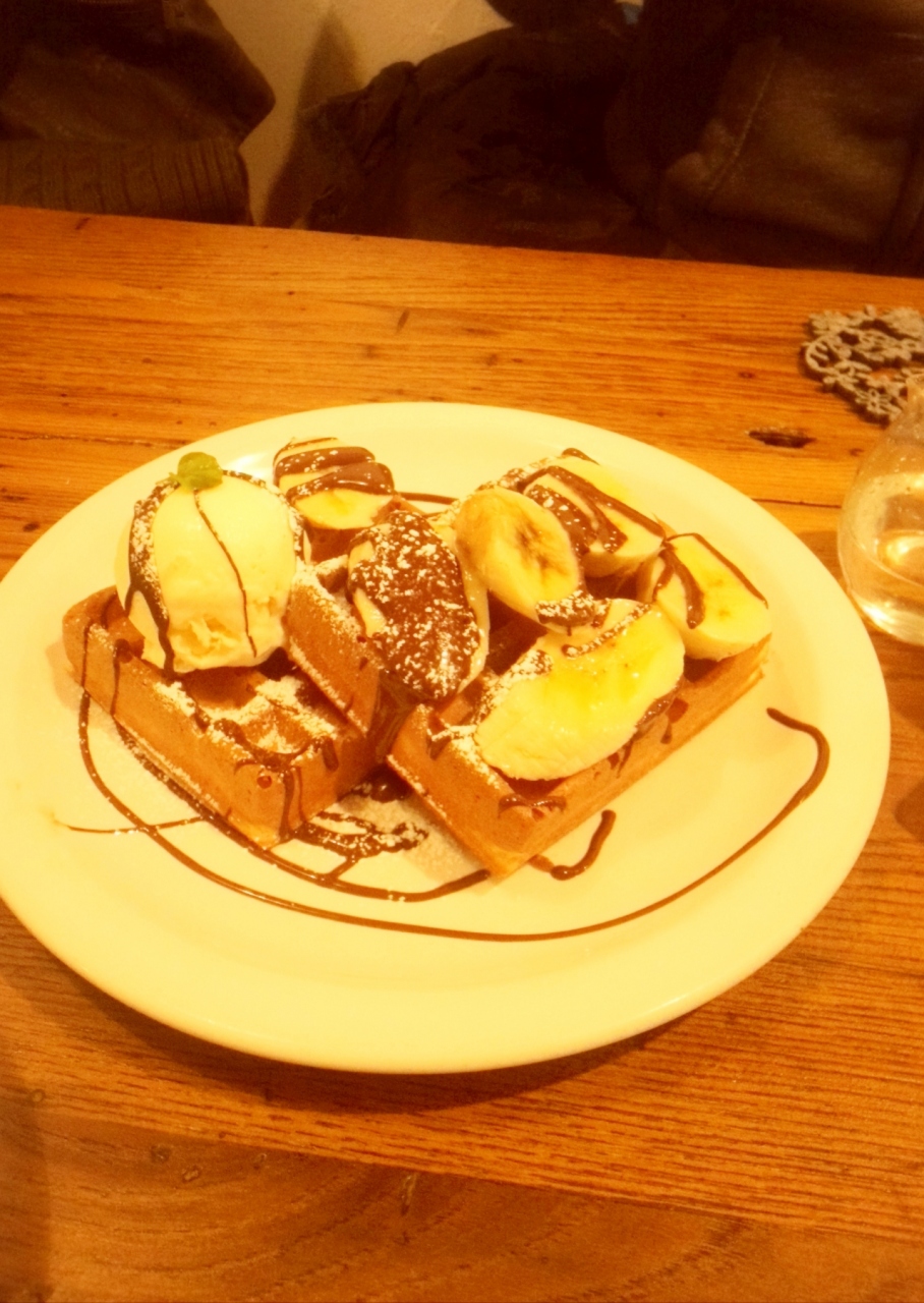 ここは久しぶりに下北沢に遊びに行って見付けたお店です♪(^_^)/1回何となく前を通ってみて、美味しそうだな♪と思いつつ通り過ぎて、やっぱりまた入ったお店は凄く美味しいワッフル屋さんでした♪(^_^)/お店はウッド調のお店で、店内は禁煙です!喫煙はテラス席のみでした~(^^;)(;^^)しかしながら、ワッフルは見た目と違って、もの凄く軽く、食感もさくさくでこれは1人一人前ずつ直ぐに食べれるな♪と思いました♪(*^^*)次回は一人前食べたいです♪(^w^)