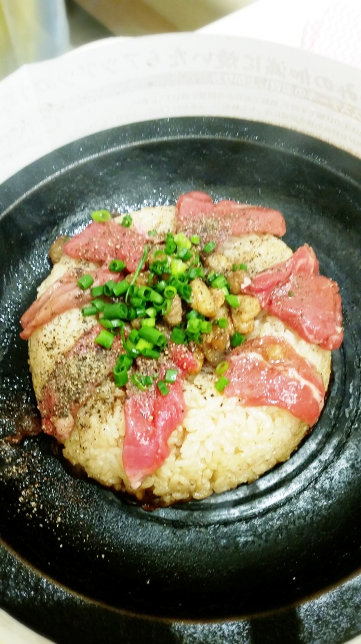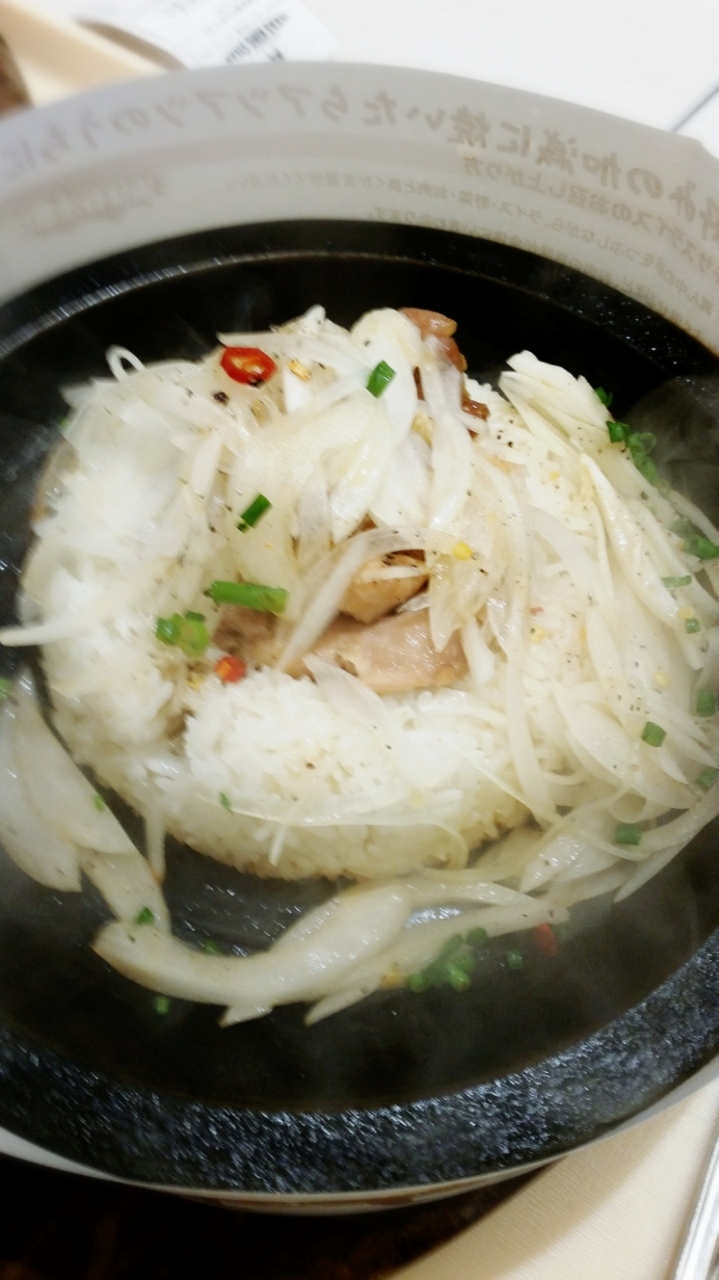 ここは友達の地元でたまたま買い物に付き合って行って来ました♪(^_^)/熱々の鉄板の上に軽く味付けされたご飯が乗っていて、その上に火の通した鶏肉や牛肉が乗っています♪(^_^)/それを鉄板の空いてる部分でトングを使って更に焼いてから、ご飯と混ぜて食べます♪(^-^ゞ味はフードコートの物として考えれば、まずまずの味でした♪(^-^)vただ、鉄板自体が熱々過ぎてご飯が軽くお焦げになるはずが、下の方がコゲコゲになってしまうのがちょっと残念でした!(-_-;)